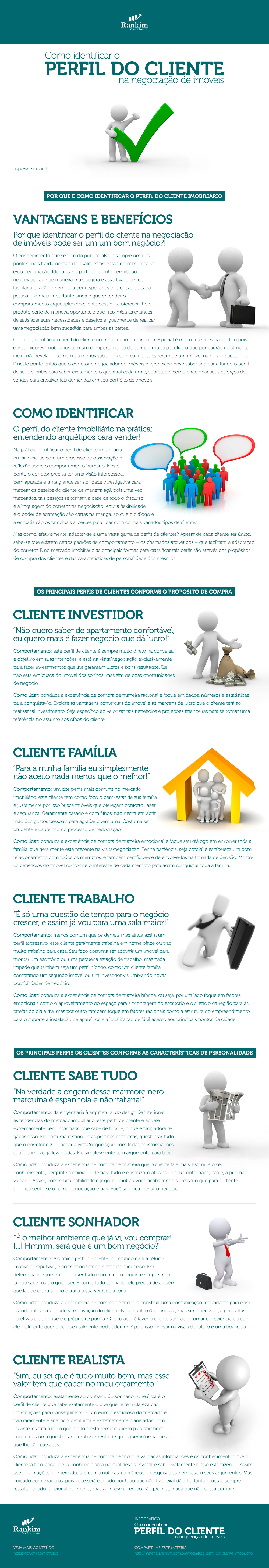 Considerando essas premissas, trace o perfil do cliente e especifique muita claramente se o imóvel que ele procura é novo ou usado e tudo o que ele deve ter, anotando na agenda o tipo, localização, número de vagas, exigências especiais — como área de lazer ou área privativa — e todas as características que devem atender às expectativas de quem você está atendendo.